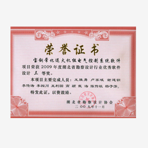 宝钢常化软件湖北省优秀设计软件三等奖
