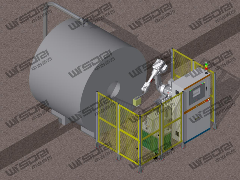 集视觉识别、工业机器人技术、标签打印技术于一体,可从 L2 自动接收钢卷信息,自动打印钢卷标签,并通过视觉识别技术自动测量钢卷外形及卷心位置,自动规划标签粘贴位置,控制工业机器人抓取标签,将标签牢固铁于钢卷内圈或外圈指定位置。